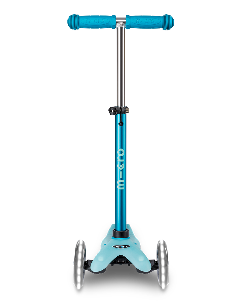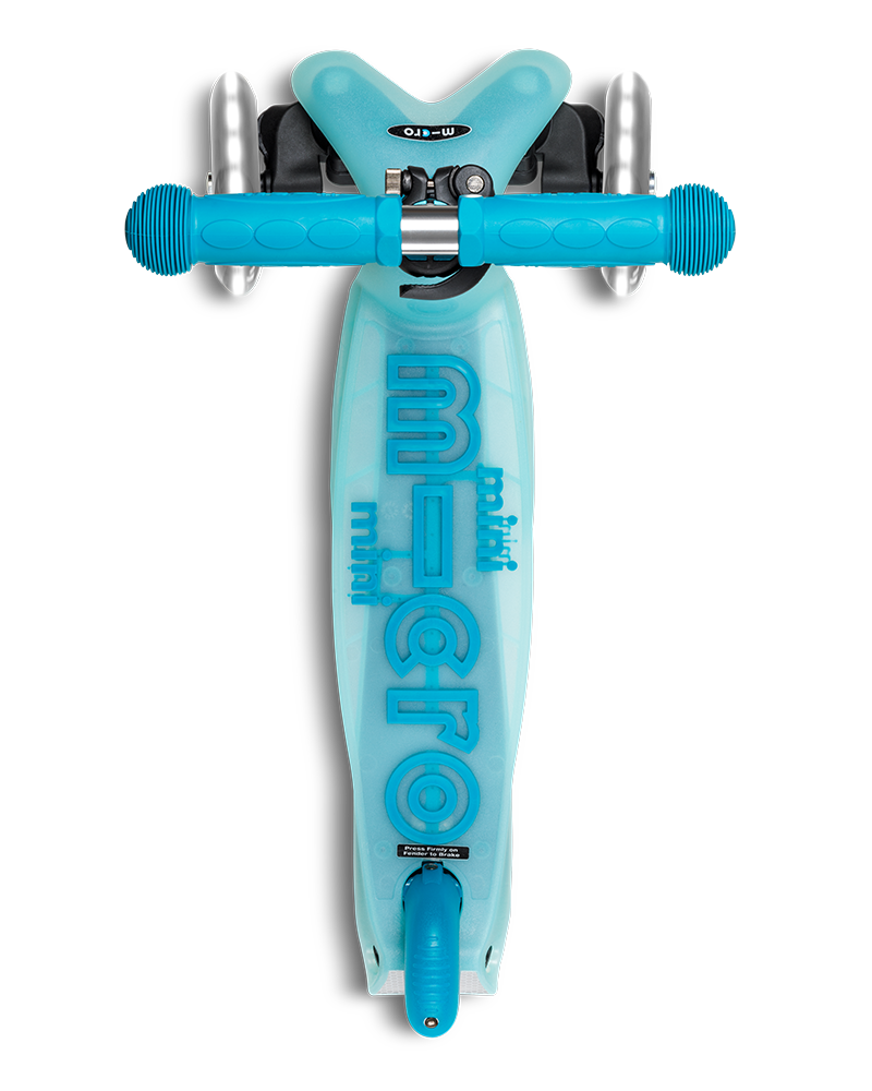 Introducing the Mini Micro Deluxe Flux LED, the ultimate ride-on for children aged 2-5 years old. With its techy character and transparent deck design, this scooter is sure to turn heads. The Mini Micro Deluxe Flux LED features LED wheels that not only make it more visible but also add a cool factor to your child's ride. Our patented lean-to-steer mechanism promotes balance and motor skills, making it an excellent tool for your child's physical development. The height-adjustable handlebar ensures that the scooter grows with your child, while the footplate with extra grippy silicone mouldings provides maximum traction for a safe and comfortable ride. The shiny alu handlebar adds an additional touch of style to the Mini Micro Deluxe Flux LED. Your child will love the sleek look and feel of the scooter. Let your child ride in style with the Mini Micro Deluxe Flux LED.