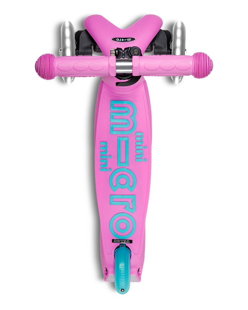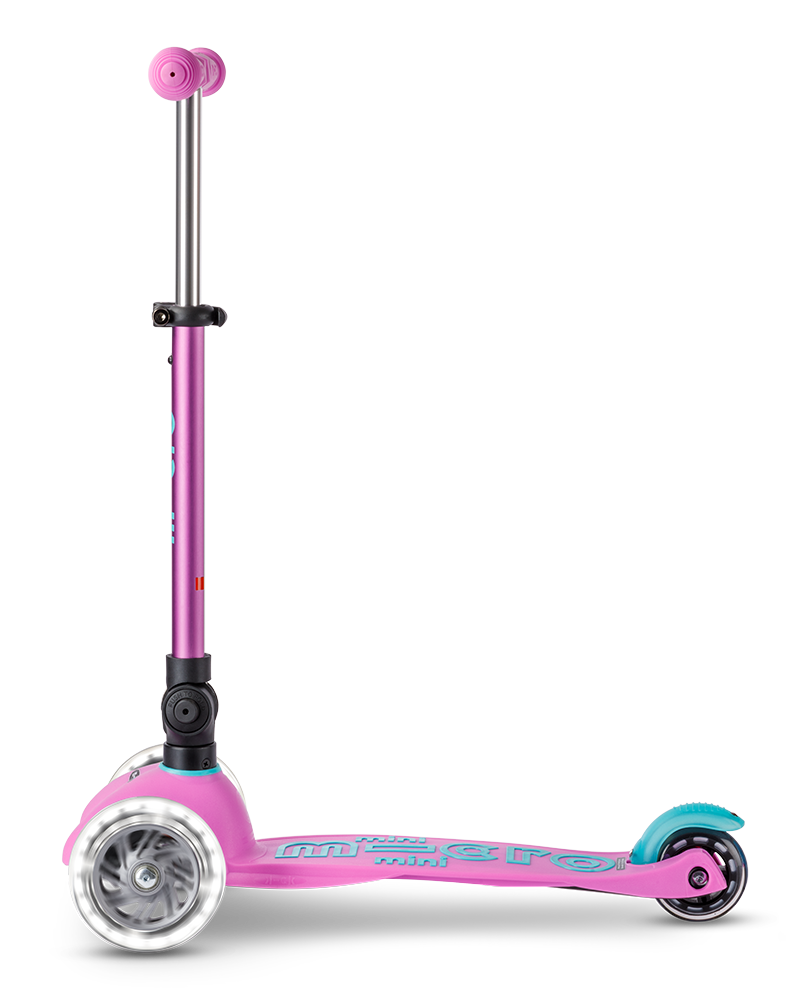 The classic scooter for kids has been made even more compact now and features an intuitive folding mechanism that makes stowing and transporting the scooter a breeze. The cool LED wheels not only provide a stylish look, but also offer additional safety in the dark. The patented steering system promotes balance, coordination and motor skills of your child and the anti-slip coating on the footboard ensures a safe stand. With the height-adjustable handlebar, the scooter can be perfectly adjusted to your child's body size for maximum riding comfort. Let your child experience the freedom of scooter riding in a whole new way with the Mini Micro Deluxe Foldable LED!