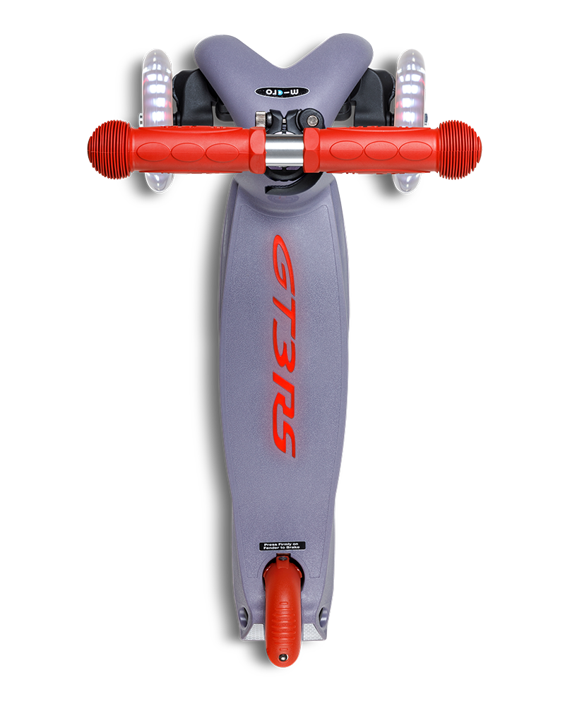 This scooter brings big performance to small adventures. Designed for children aged 2 to 5, it combines iconic design with smart technology that perfectly balances safety, learning and everyday usability. The striking GT3 RS logo on the deck is illuminated by a dynamo-powered rear wheel, ensuring reliable visibility without the need for batteries.